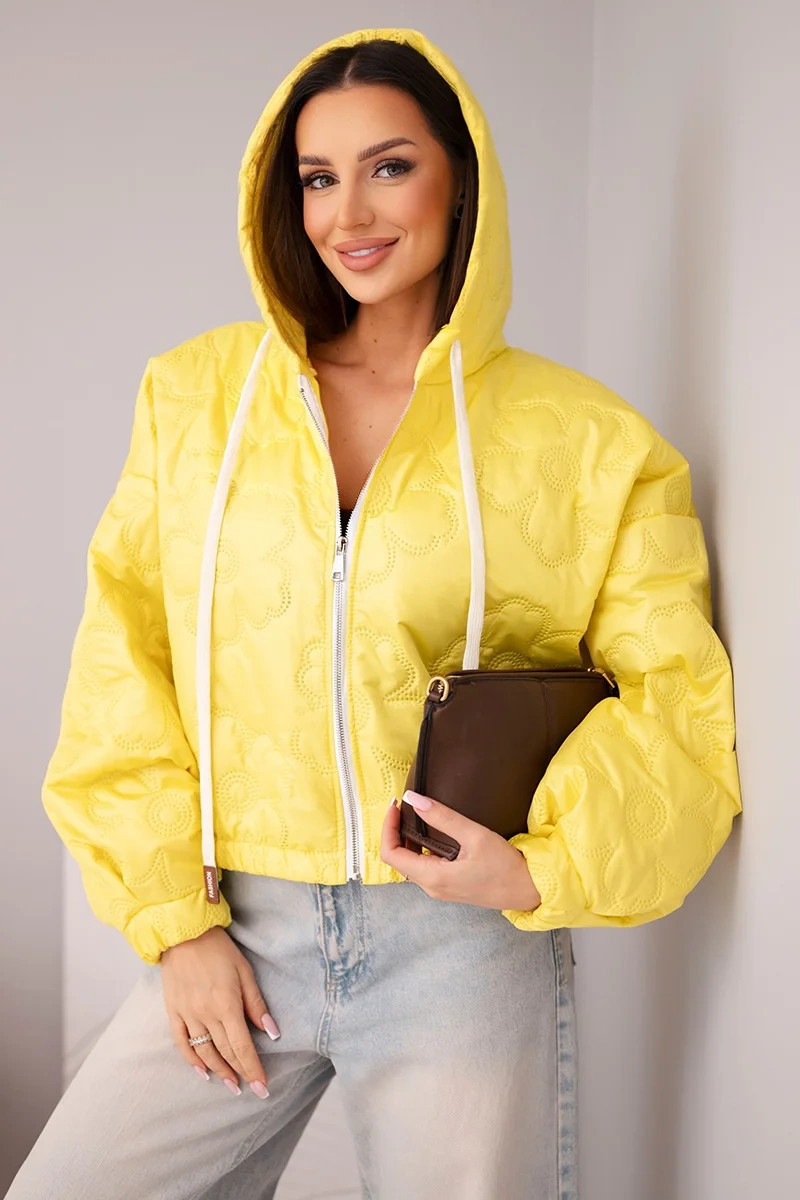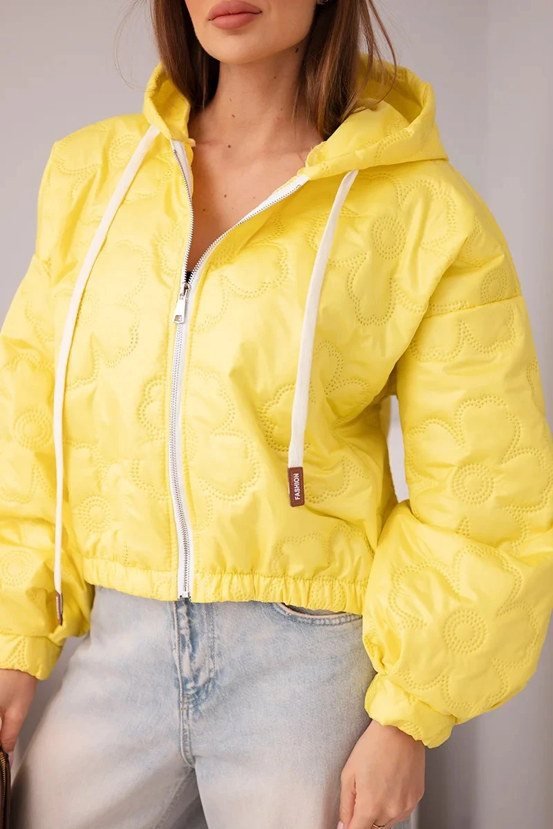 - Prošívaná dámská bunda s ozdobným ražením květin