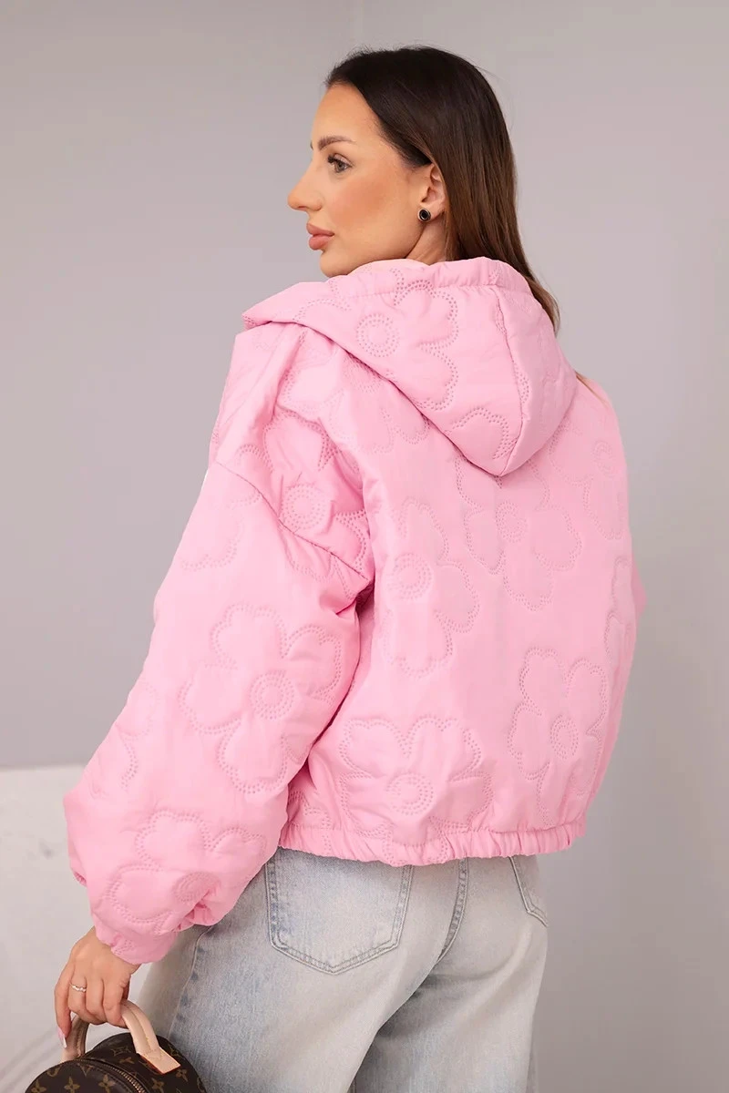 - Prošívaná dámská bunda s ozdobným ražením květin