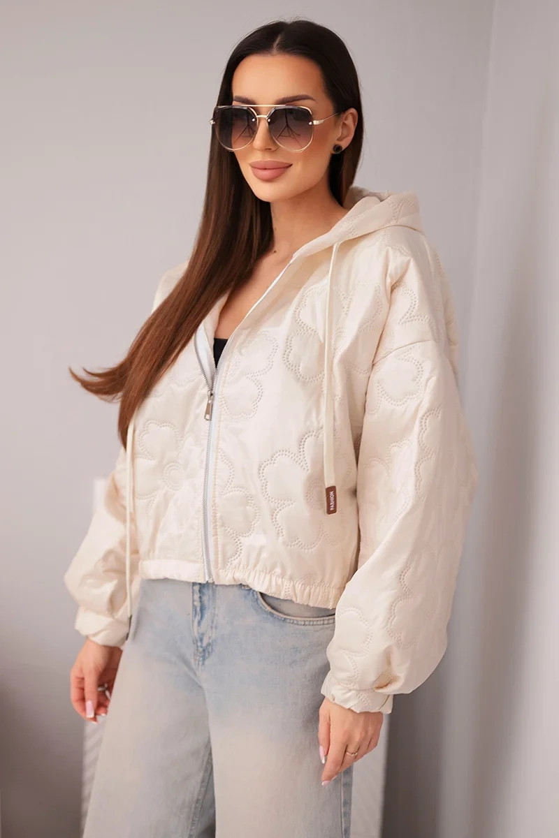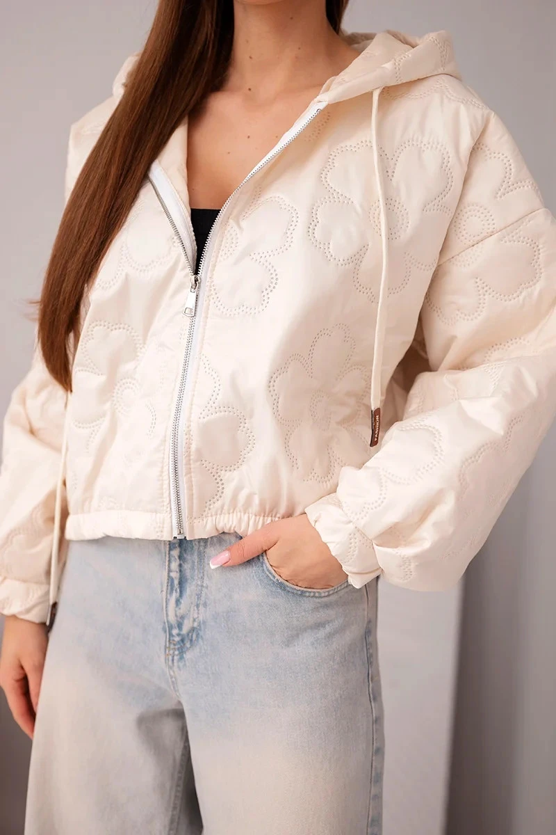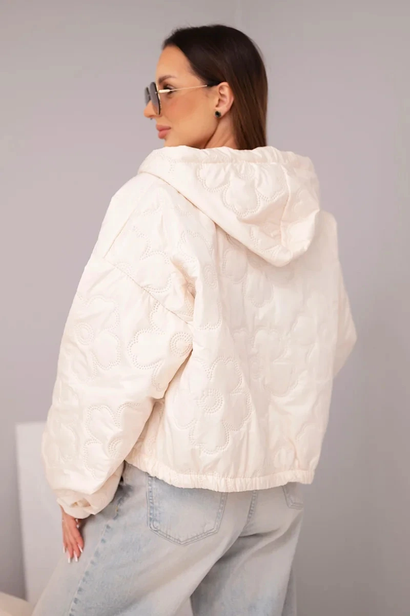 - Prošívaná dámská bunda s ozdobným ražením květin