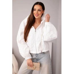 • Dámská prošívaná bunda s kapucí a ozdobným květinovým ražením bílá