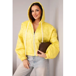 Dámská prošívaná bunda s kapucí a ozdobným květinovým ražením žlutá