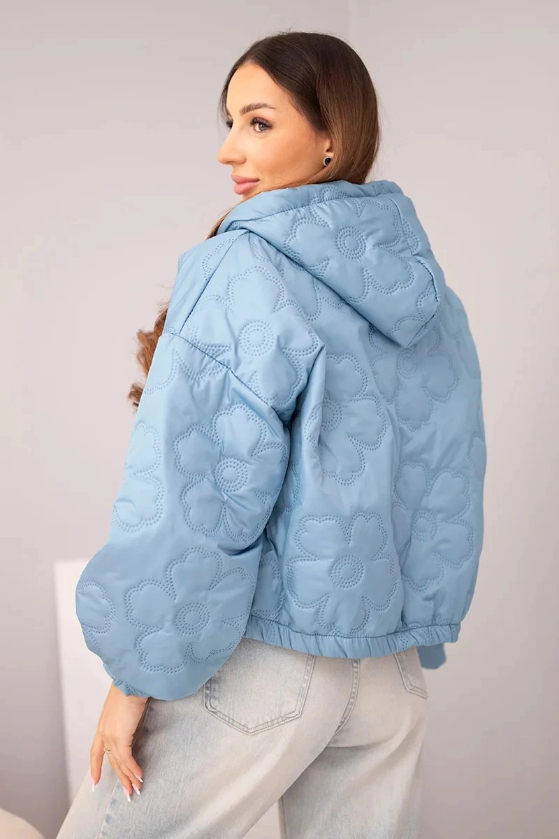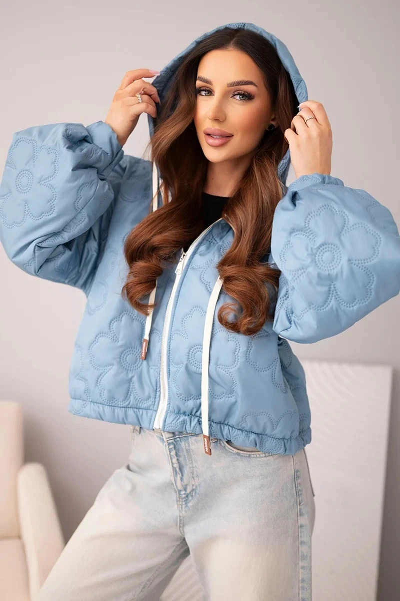 • Dámská prošívaná bunda s kapucí a ozdobným květinovým vzorem model 22010146 - K-Fashion