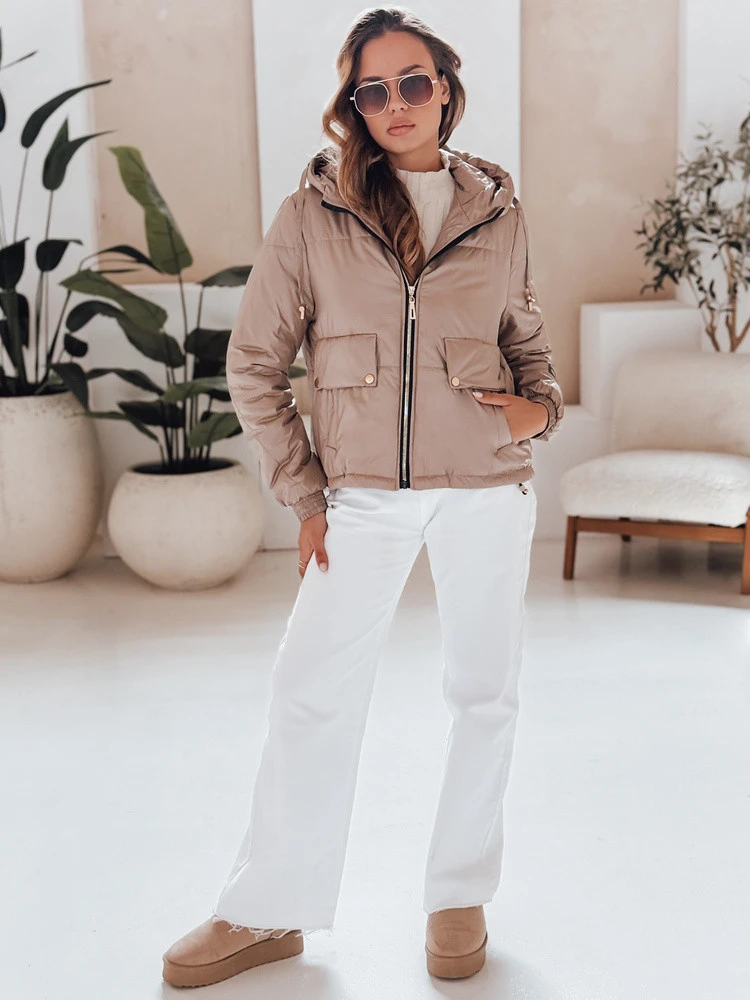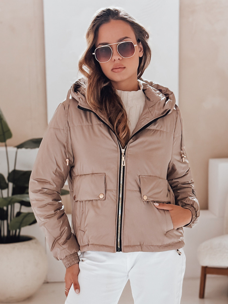 Dámská prošívaná bunda s kapucí ARON camel FashionStreet TY4398