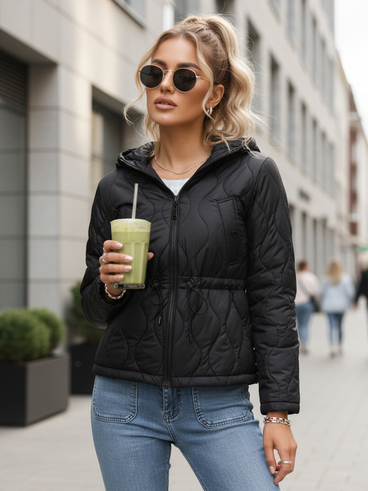 Dámská bunda s lehkou prošívanou konstrukcí navržená pro přechodné období. Model kombinuje funkčnost se střihem na míru, který zdůrazňuje siluetu, aniž by omezoval volnost pohybu. Nastavitelný pas a odepínací kapuce zvyšují komfort nošení v proměnlivých povětrnostních podmínkách. Celek se dobře osvědčí při každodenním nošení ve městě.