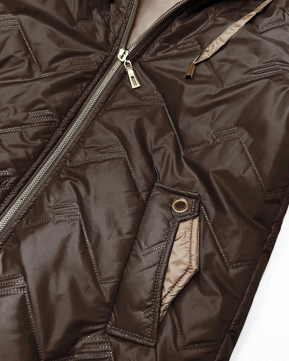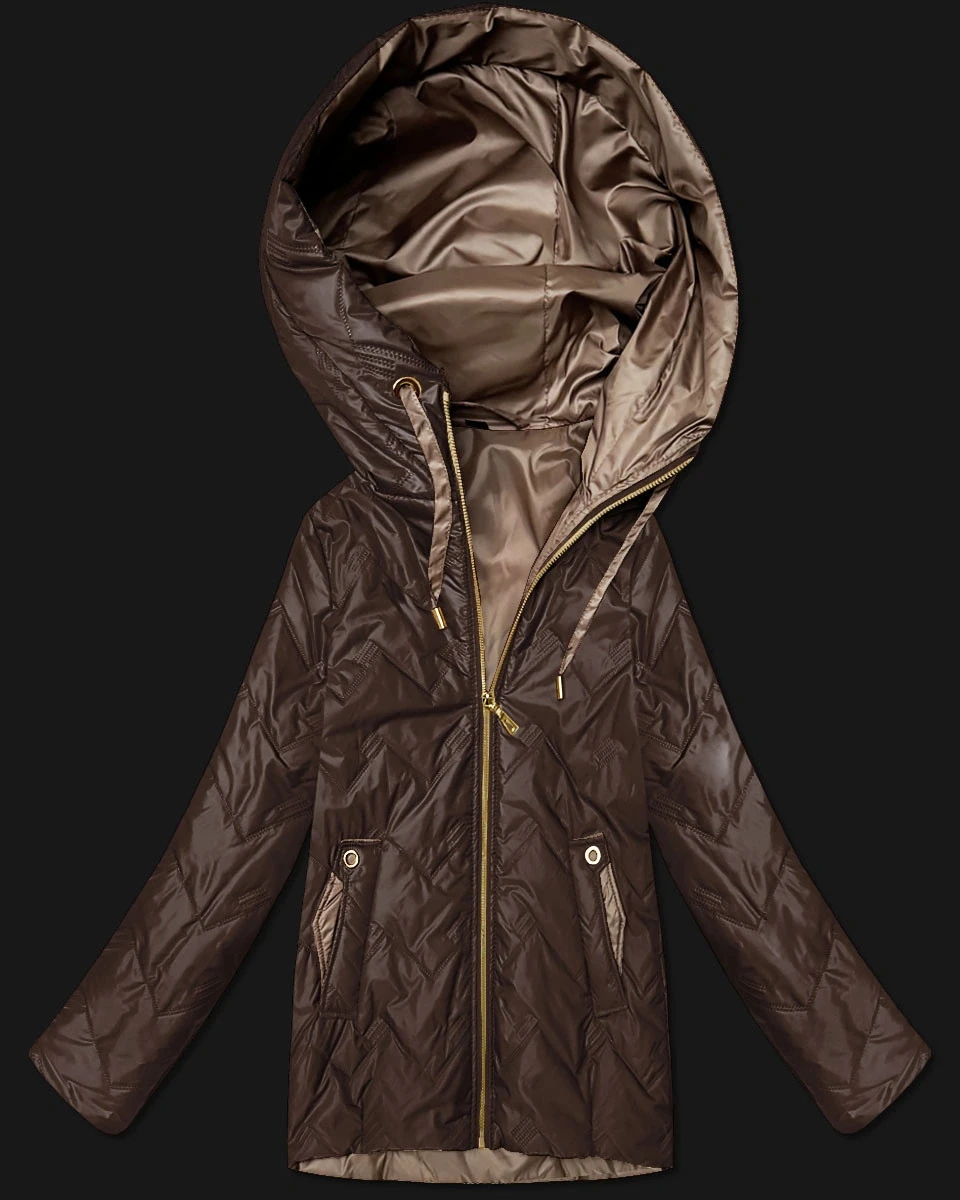 Dámská prošívaná bunda s kapucí Goodlookin v čokoládové barvě (B8596-14)