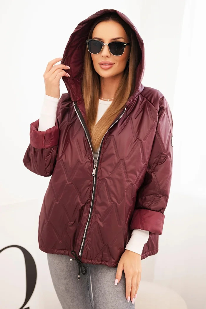 3. Dámská prošívaná bunda s kapucí švestková