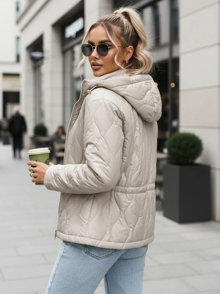 Dámská bunda s lehkou prošívanou konstrukcí navržená pro přechodné období. Model kombinuje funkčnost se střihem na míru, který zdůrazňuje siluetu, aniž by omezoval volnost pohybu. Nastavitelný pas a odepínací kapuce zvyšují komfort nošení v proměnlivých povětrnostních podmínkách. Celek se dobře osvědčí při každodenním nošení ve městě.