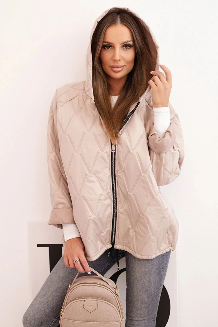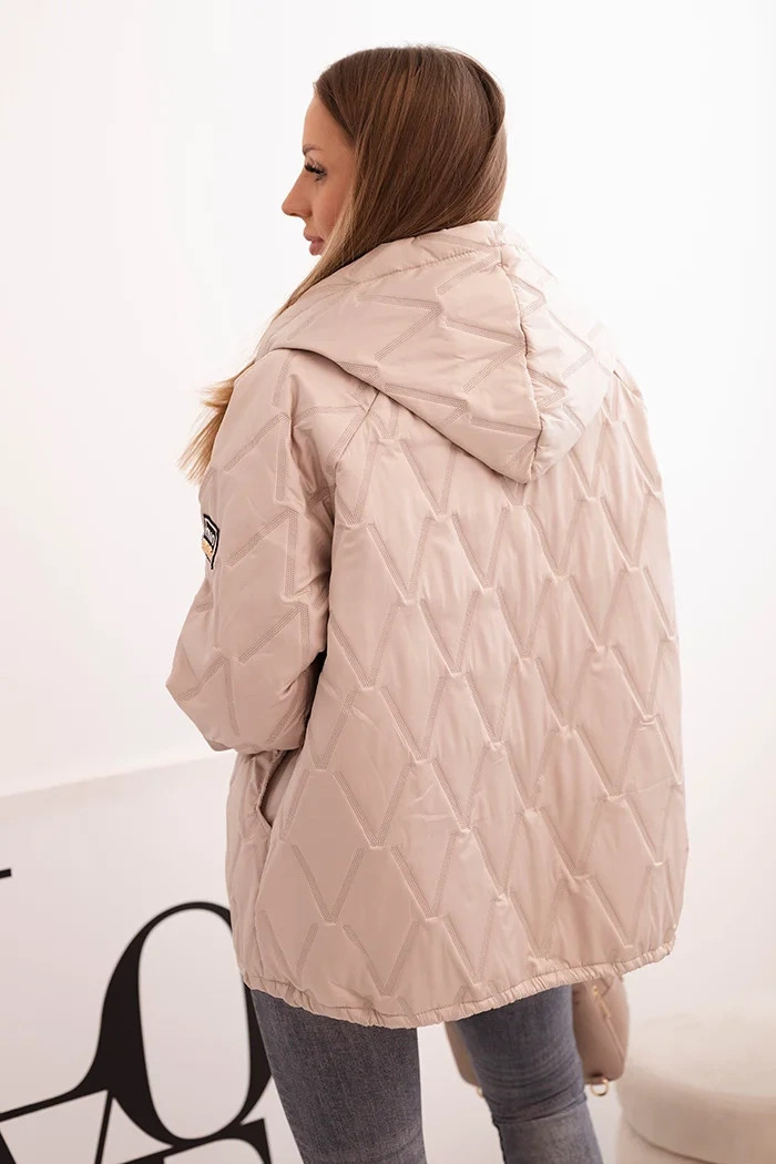Dámská prošívaná bunda s kapucí tmavě béžová