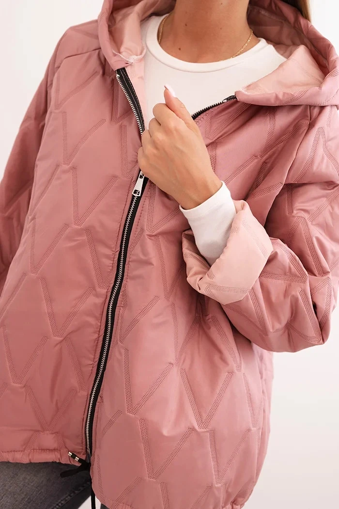 • Dámská prošívaná bunda s kapucí tmavě růžová