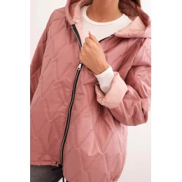 Dámská prošívaná bunda s kapucí tmavě růžová