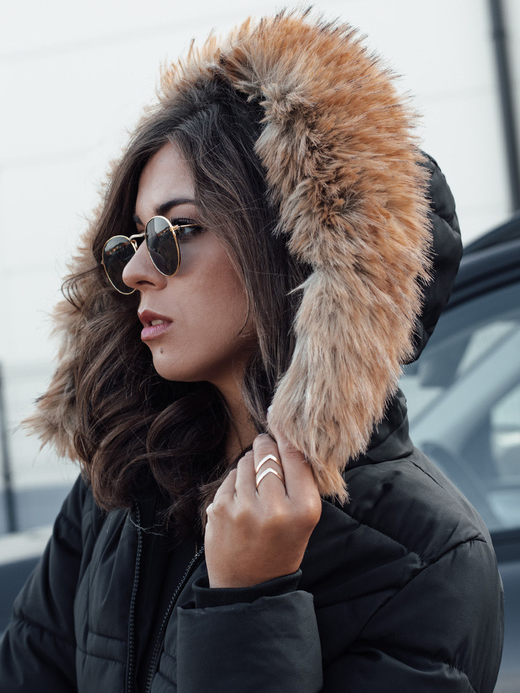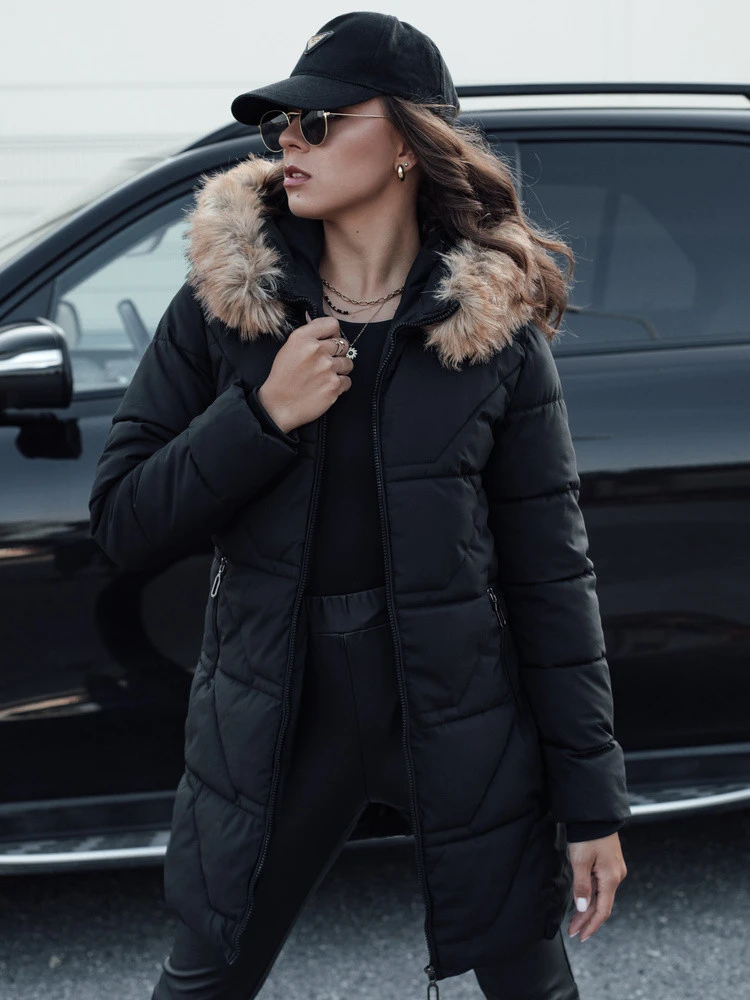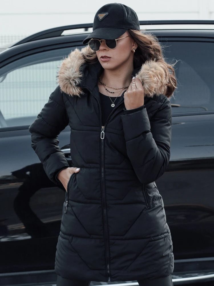 Dámská prošívaná bunda s kožešinou černá FashionStreet TY4577
