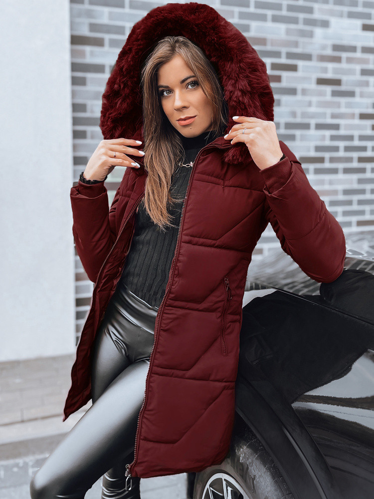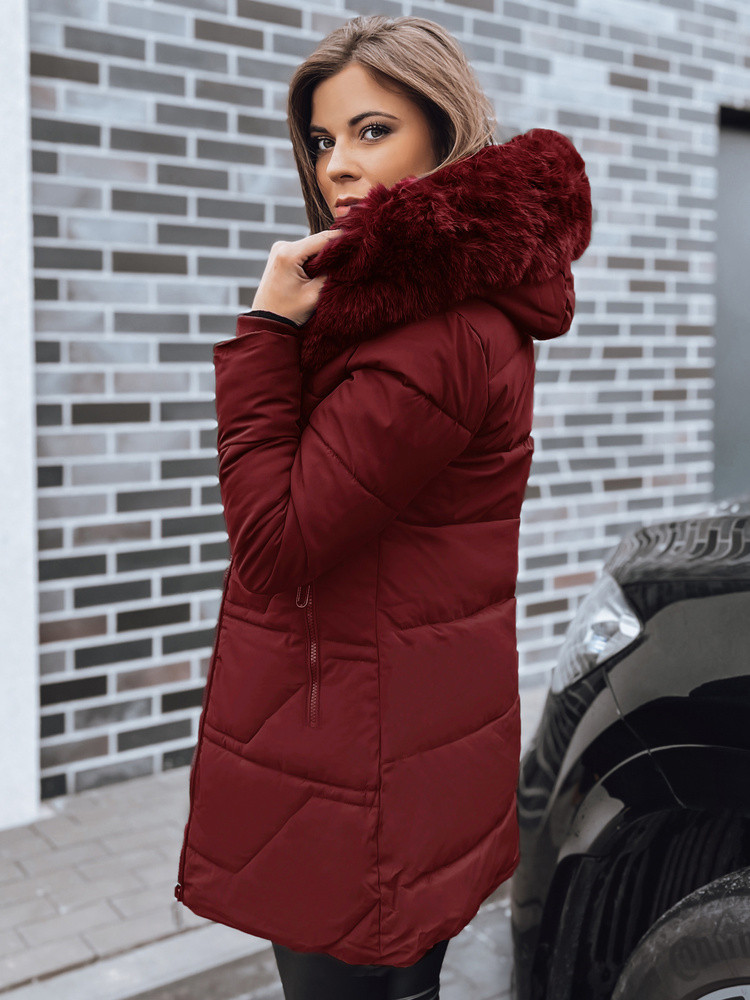 Dámská prošívaná bunda s kožešinou vínová FashionStreet TY5396