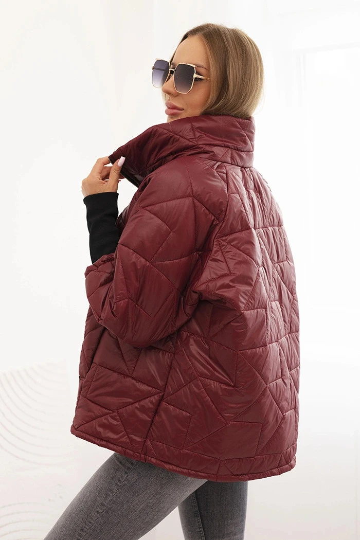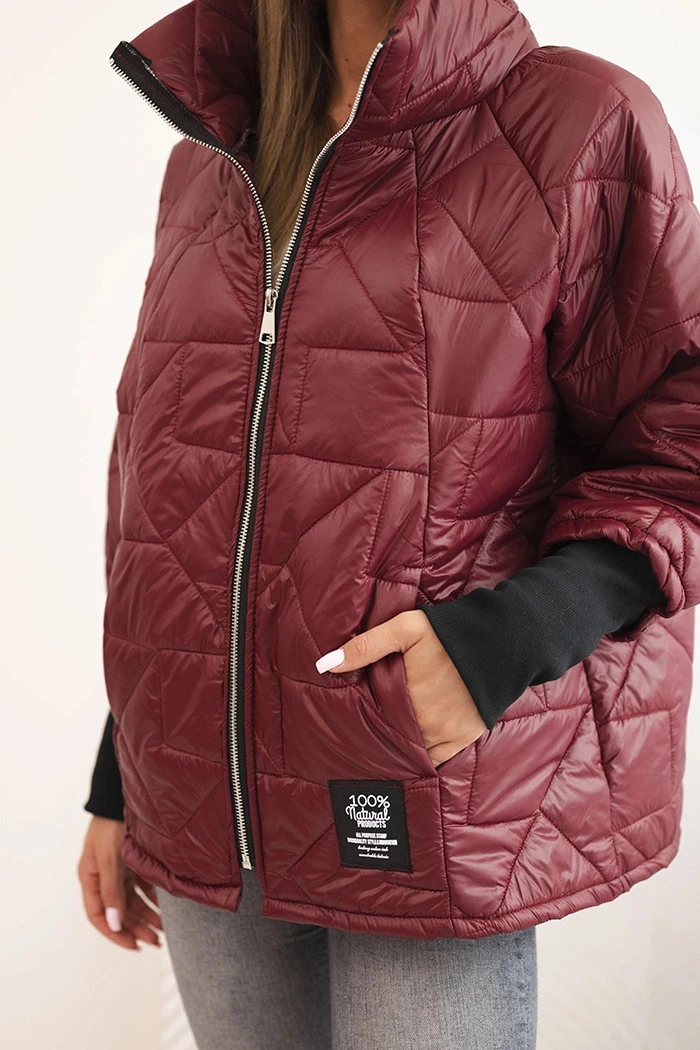 • Dámská prošívaná bunda s krátkým střihem a stojáčkem bordová