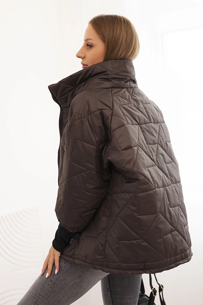 • Dámská prošívaná bunda s krátkým střihem a stojáčkem hnědá
