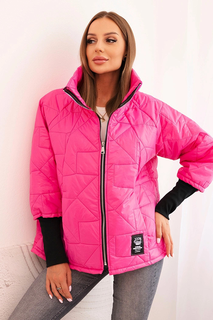 • Dámská prošívaná bunda s krátkým střihem a stojáčkem růžová