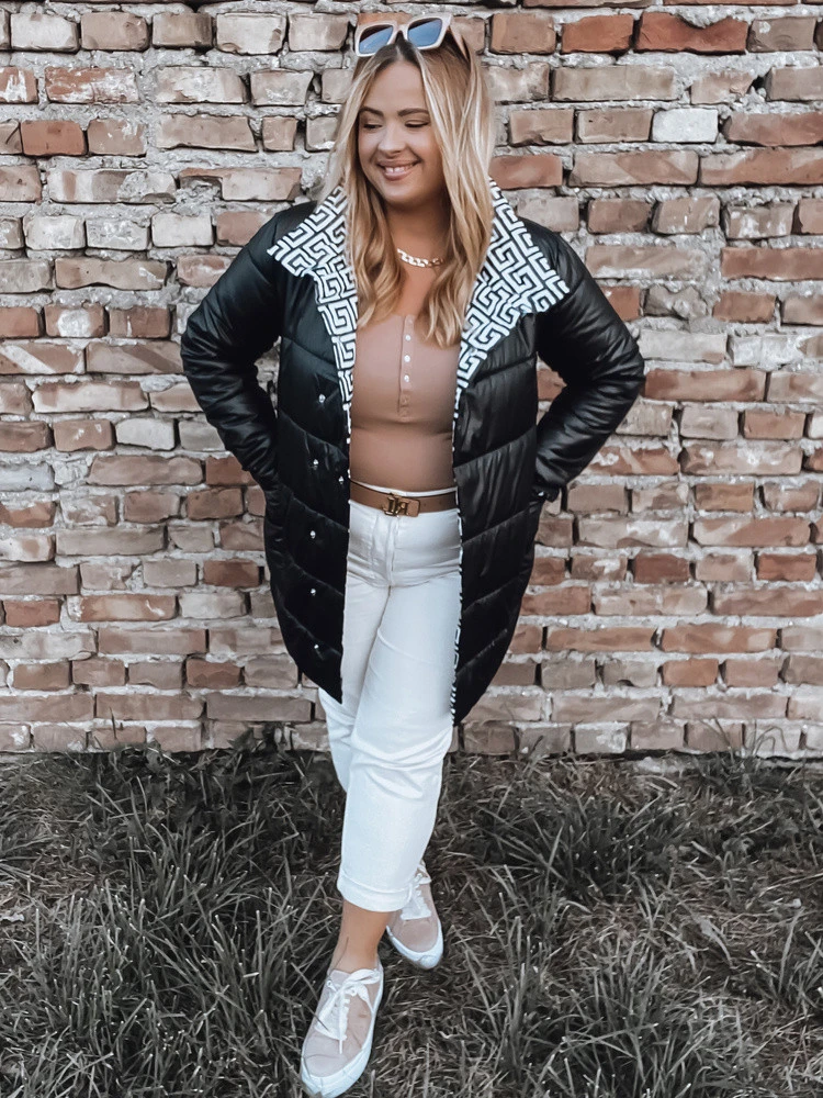 Prošívaná bunda je ideální volbou pro přechodné období! Model se zapíná na patentky, má velké kapsy a módní potisk. Je skvělým doplňkem každodenních outfitů, které budou bezpochyby vypadat fenomenálně a získají jedinečný charakter.