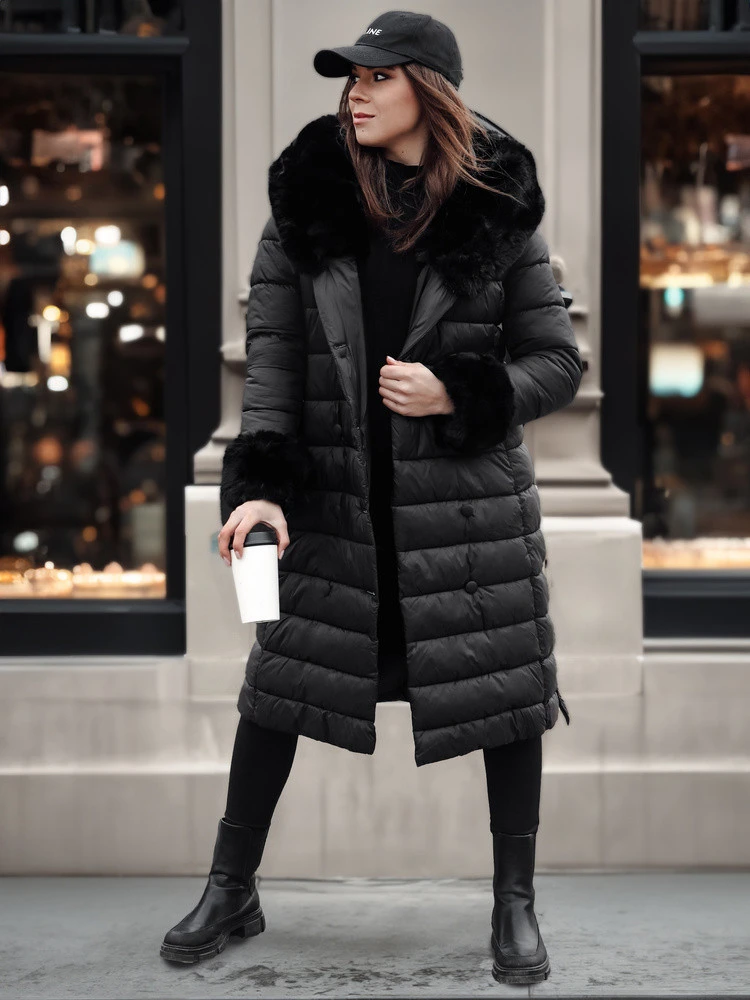 Dámská prošívaná dlouhá bunda ZAELEGANTE černá FashionStreet TY4779