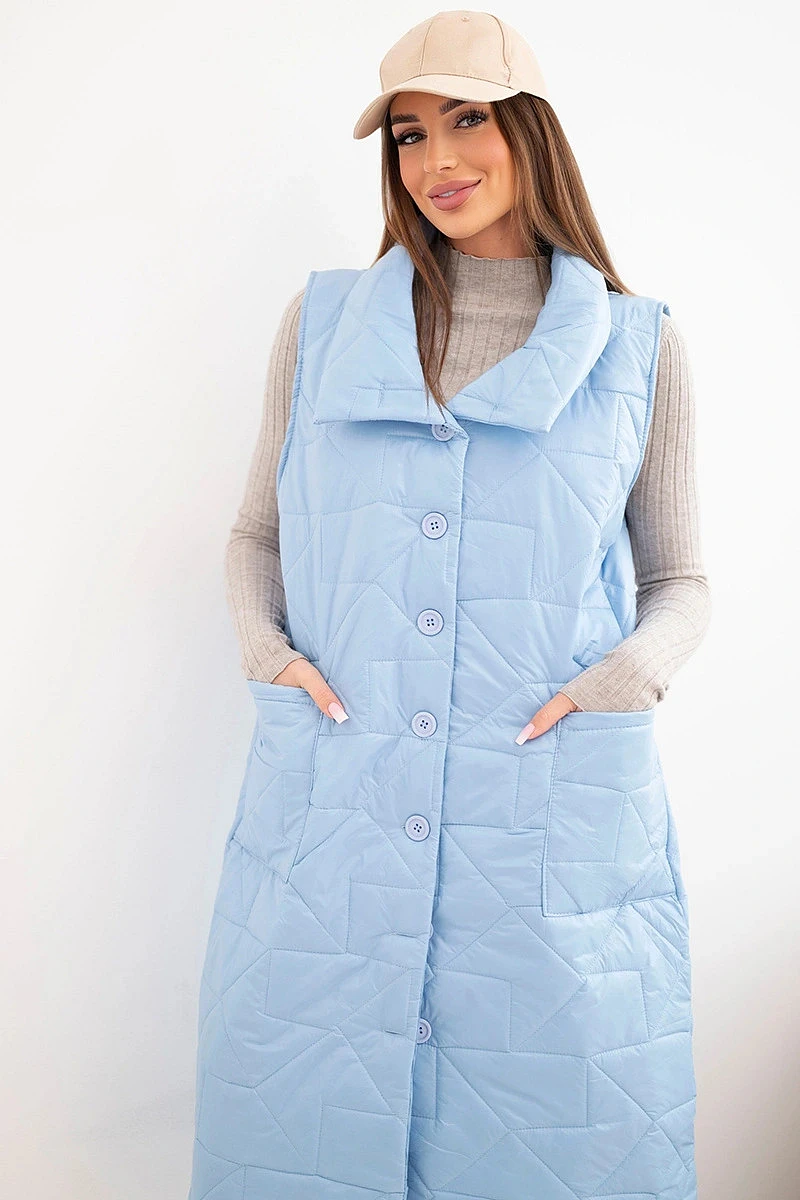 • Dámská prošívaná dlouhá vesta s kapsami a stojáčkem modrá