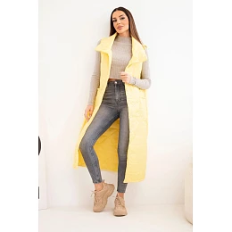• Dámská prošívaná dlouhá vesta s kapsami a stojáčkem žlutá