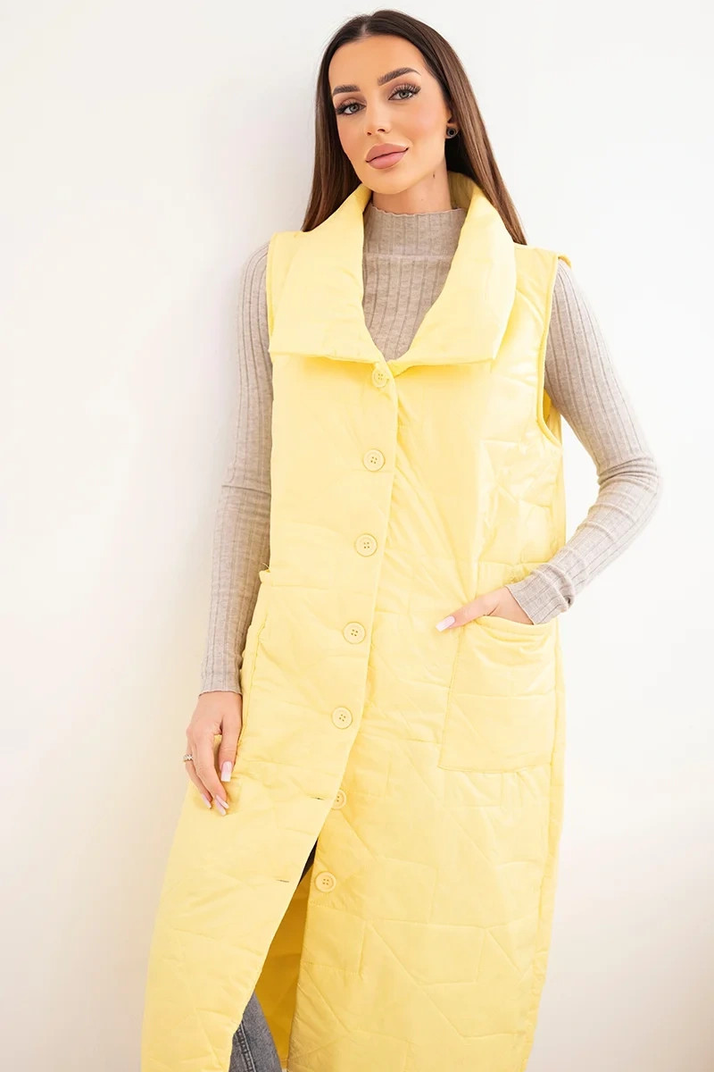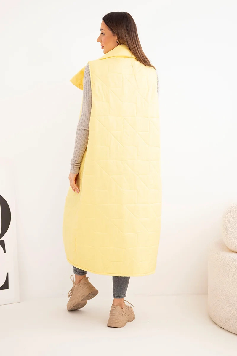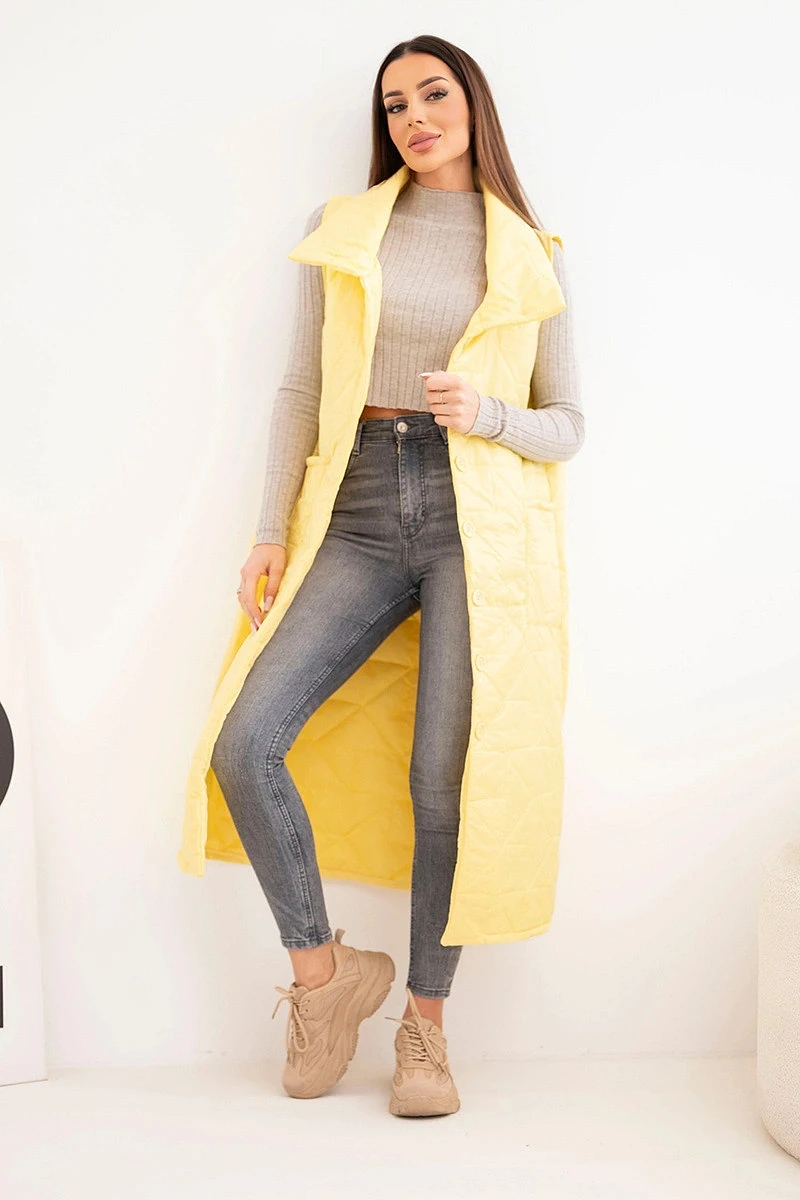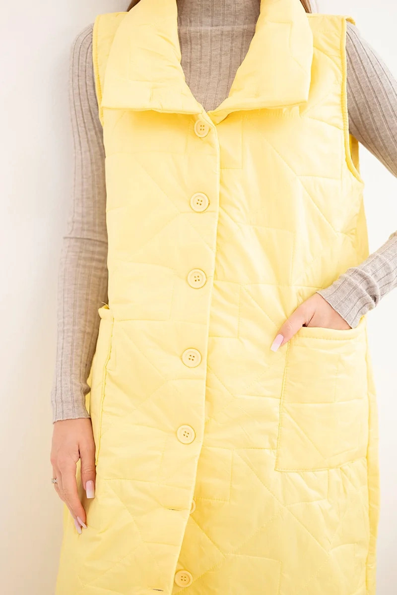 • Dámská prošívaná dlouhá vesta s kapsami a stojáčkem žlutá