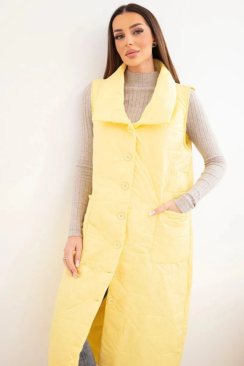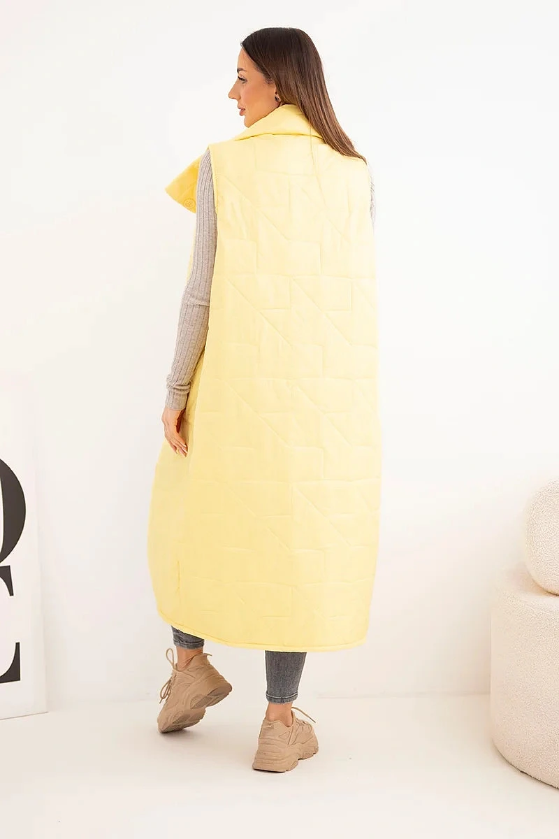 Dámská prošívaná dlouhá vesta s kapsami a stojáčkem žlutá