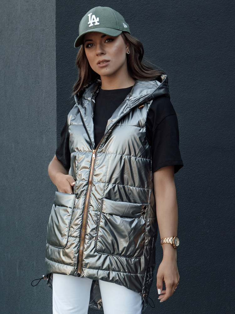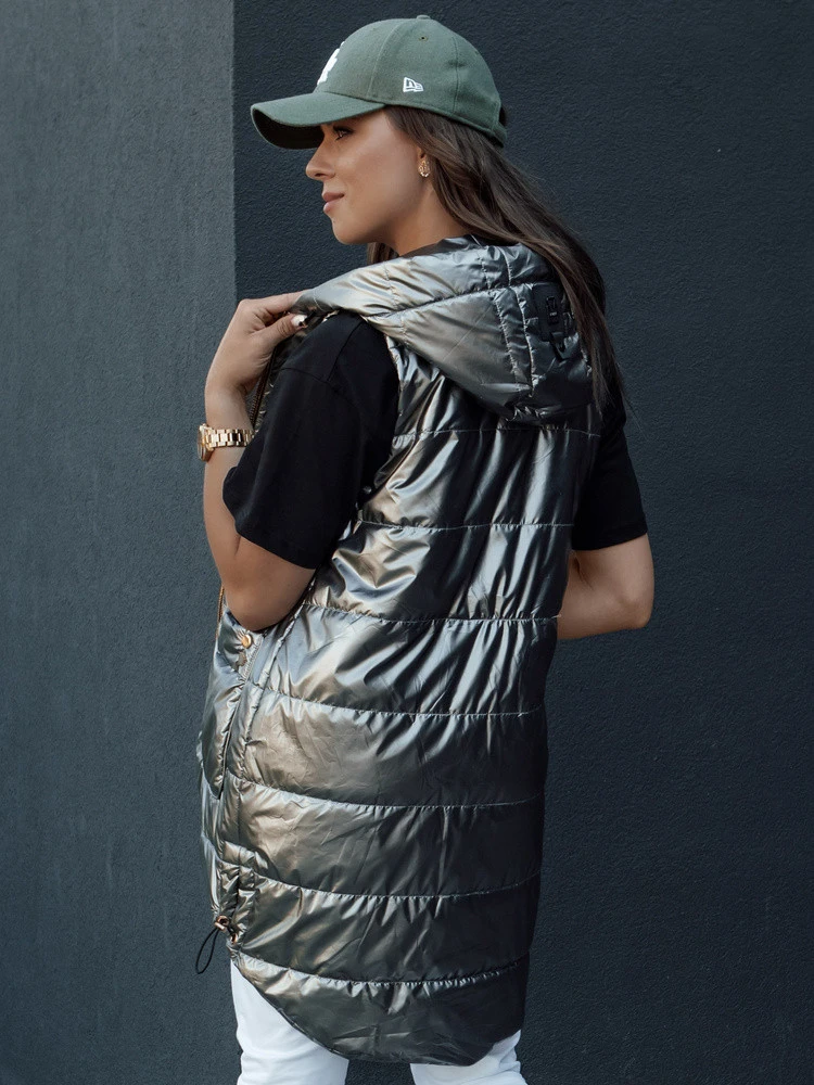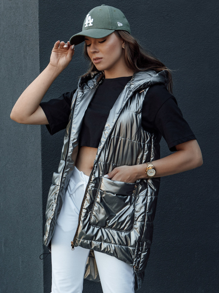 Dámská prošívaná dlouhá vesta s kapucí JESS tmavě šedá FashionStreet TY4446