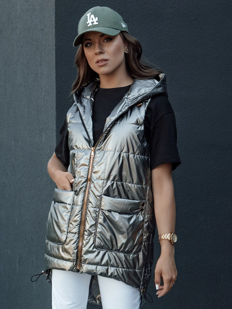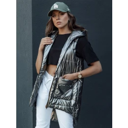 Přidání recenze k Dámská prošívaná dlouhá vesta s kapucí JESS tmavě šedá FashionStreet TY4446