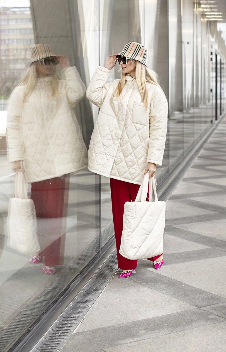 Přidání recenze k Dámská prošívaná oversize bunda v ecru barvě s kapucí model 20471213 - Ann Gissy