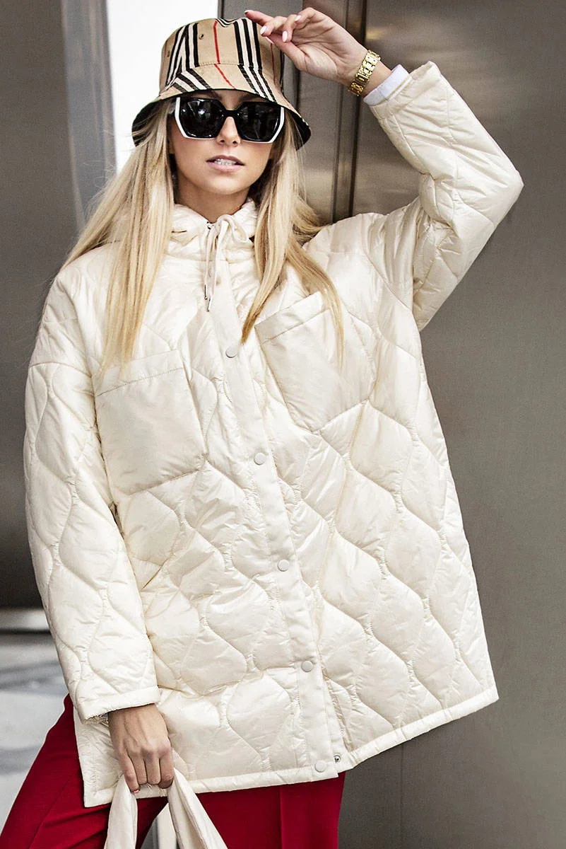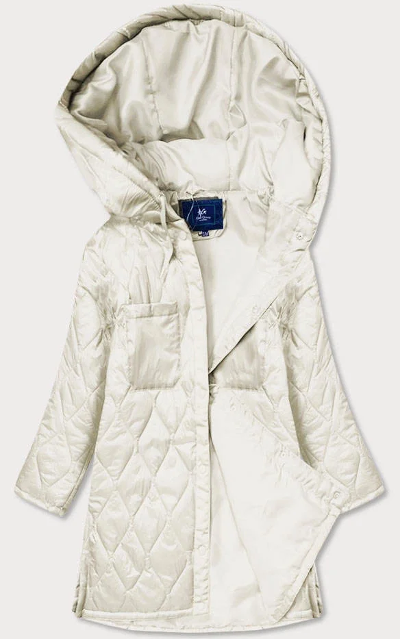 Dámská prošívaná oversize bunda v ecru barvě s kapucí model 20471213 - Ann Gissy