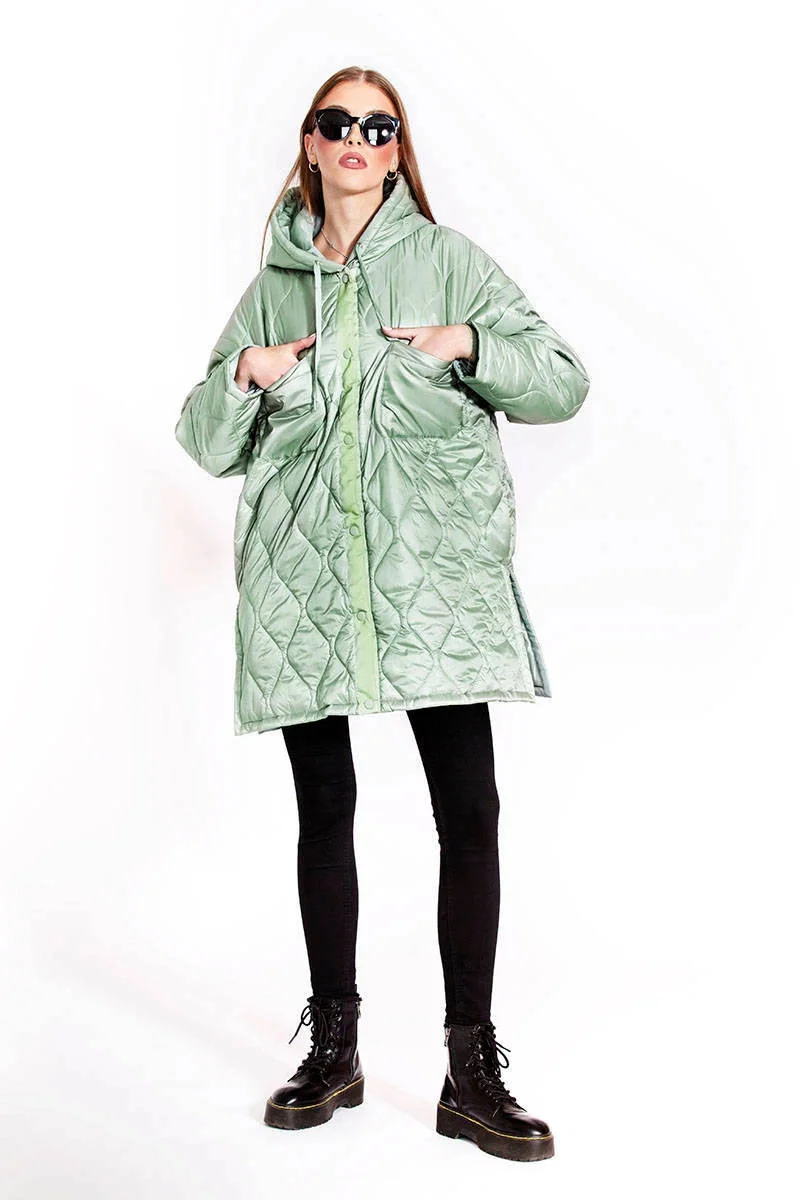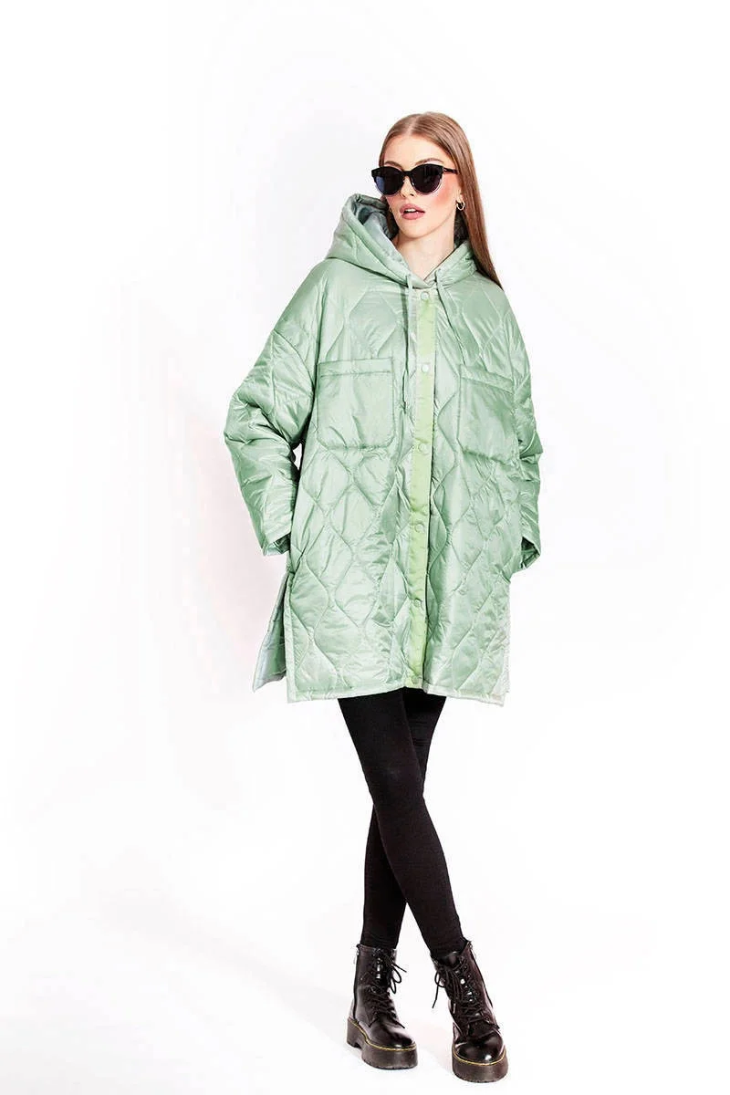 Dámská prošívaná oversize bunda v mátové barvě s kapucí model 20471209 - Ann Gissy