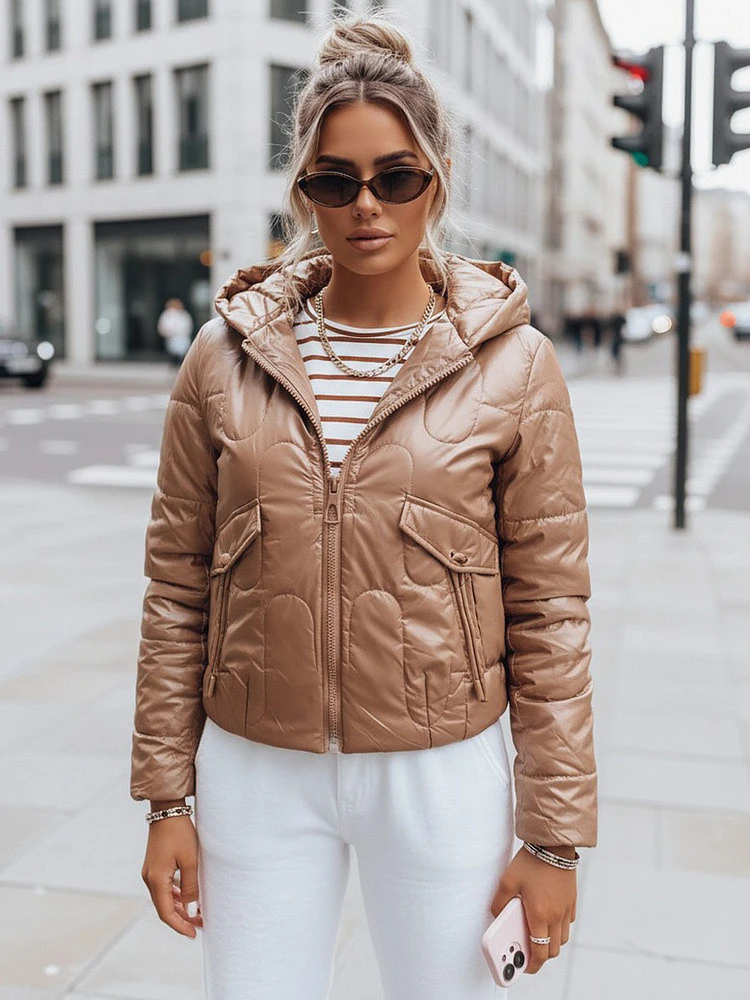 Sportovní prošívaná bunda, která skvěle doplní váš outfit, s neodnímatelnou kapucí, která dodá sportovní nádech, ozdobnými šňůrkami u kapes, nezatepleným provedením, díky kterému je bunda velmi lehká, a několika barevnými variantami.