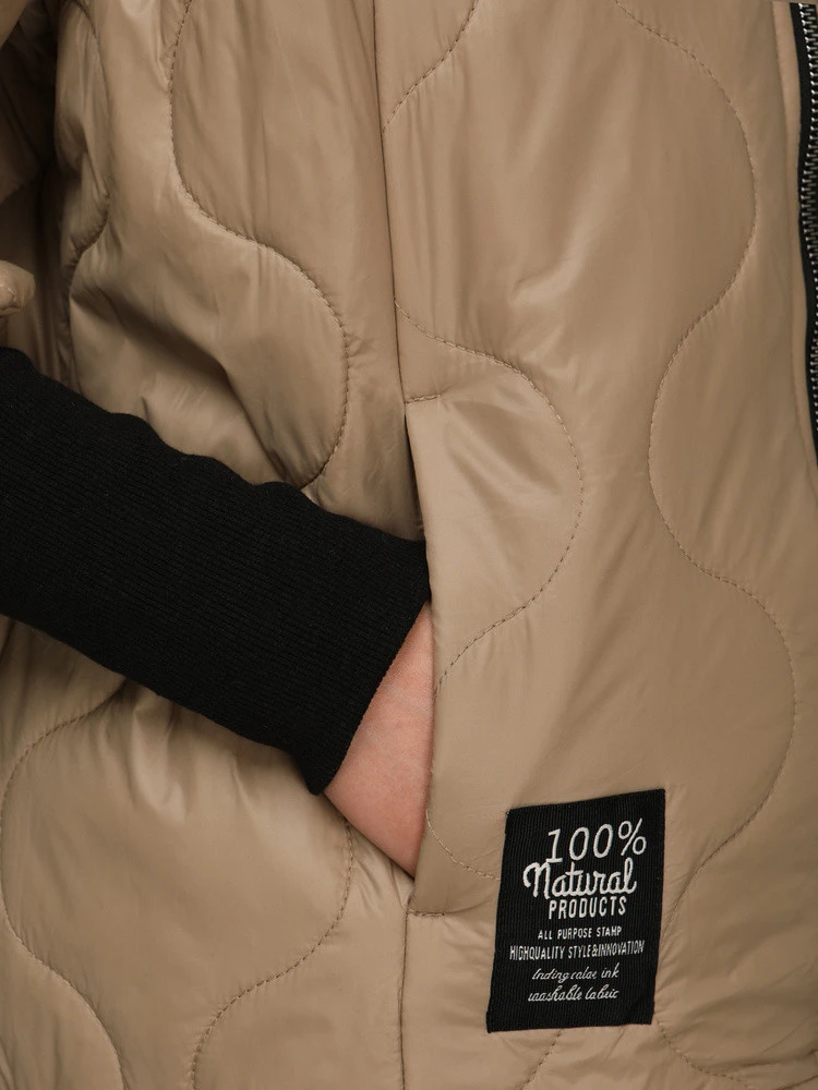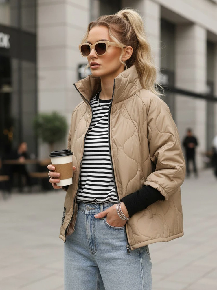 Lehká izolace a prošívaný tvar zajišťují tepelný komfort při mírně chladných podmínkách.