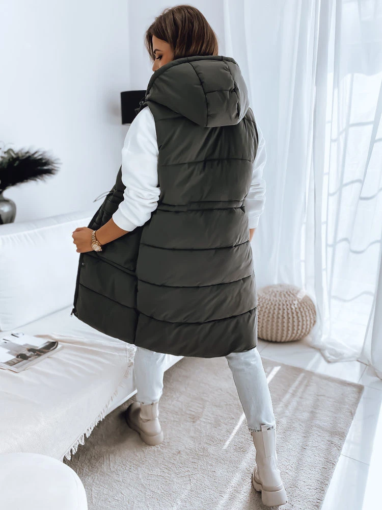 Prošívaná vesta LADISA dlouhého střihu má velkou neodnímatelnou kapuci, stahovací šňůrku v pase, která krásně zvýrazní váš pas, a dvě praktické kapsy, které jsou zároveň ozdobným prvkem. Krásně doplní jakýkoli váš outfit a je k dispozici ve třech barevných provedeních.