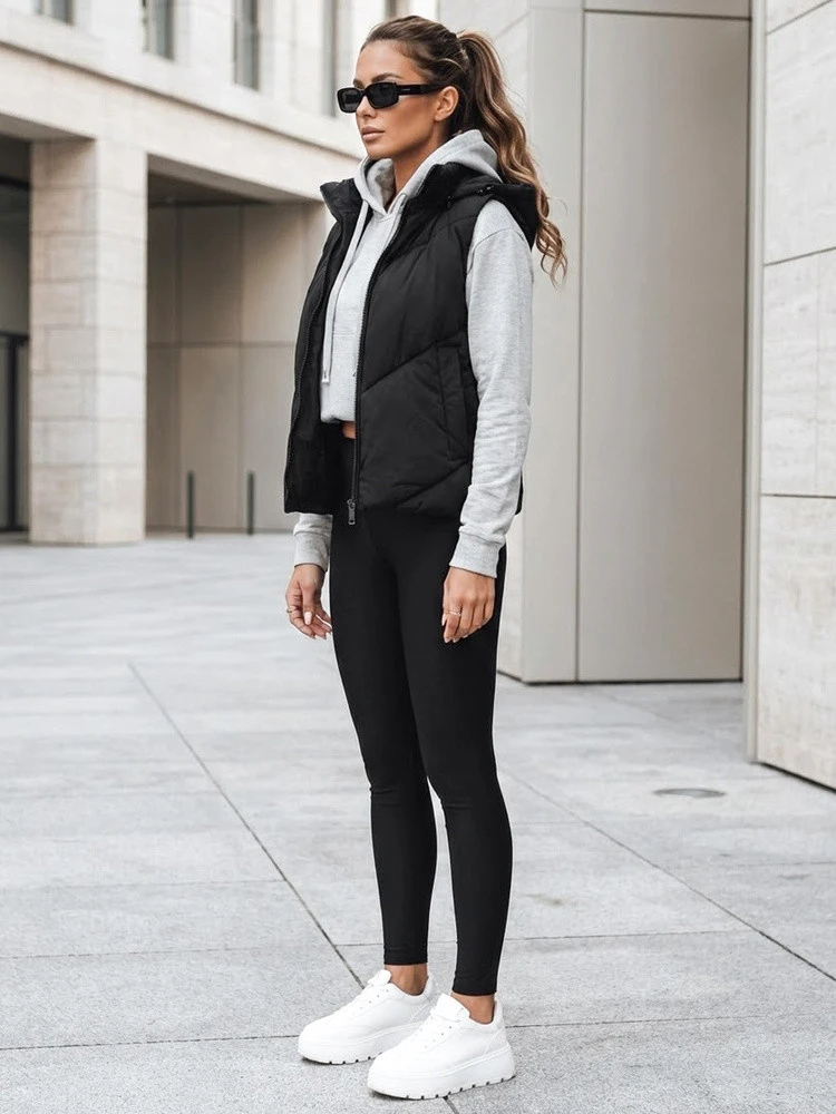 Tato dámská prošívaná vesta s kapucí je nezbytnou výbavou pro chladnější jarní dny a díky své lehké, neomezující konstrukci skvěle padne. Zip po celé délce a praktické kapsy zajišťují funkčnost, zatímco módní střih dodává styl každodenním outfitům.