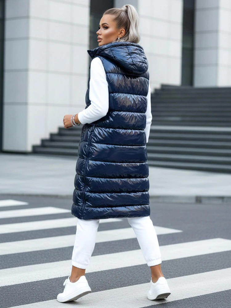 Tato prošívaná vesta s prodlouženým střihem doplňuje stylizaci do chladného počasí a poskytuje další vrstvu pohodlí, aniž by omezovala volnost pohybu. Lesklá tkanina dodává moderní nádech, zatímco svislé prošívání upravuje siluetu. Kapuce zvyšuje funkčnost v proměnlivém počasí a model se hodí pro sportovní i ležérní styling.