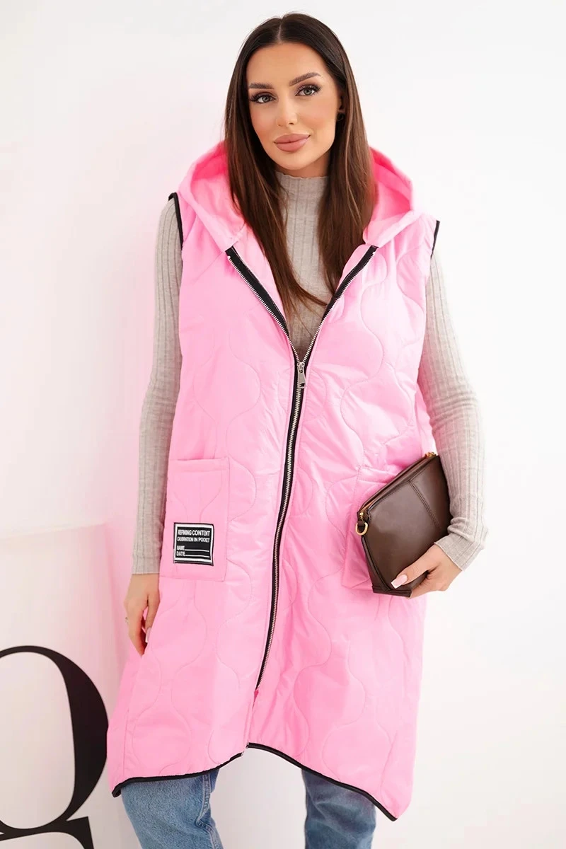 Pikovaná dámská vesta Plus Size je ideálním návrhem na chladnější dny. Díky praktické kapuci a pohodlnému zapínání na zip se hodí jak do městských stylizací, tak na procházky. Model má módní geometrický vzor prošívání, který dodává celku charakter, a délka sahající za boky skvěle modeluje siluetu. Prostorné kapsy vpředu zvyšují funkčnost a ozdobná nášivka dodává sportovní styl. Tato vesta je kombinací pohodlí a stylu – vyrobena z lehkého, ale odolného materiálu, ideální k nošení po celou přechodnou sezónu. Může být kombinována s legínami, džíny nebo sportovním šaty, čímž vytváří módní, vrstvené stylizace. Velikost je univerzální a bude vhodná pro dámy ve velikosti L, XL, XXL.