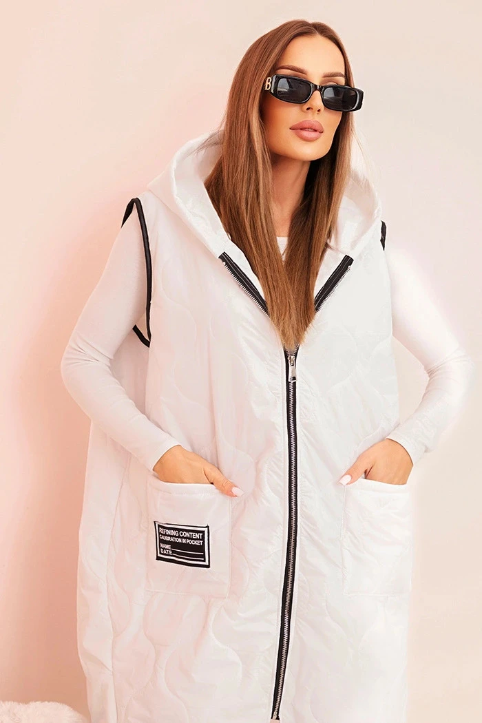 • Dámská prošívaná vesta Plus Size s kapucí na zip bílá