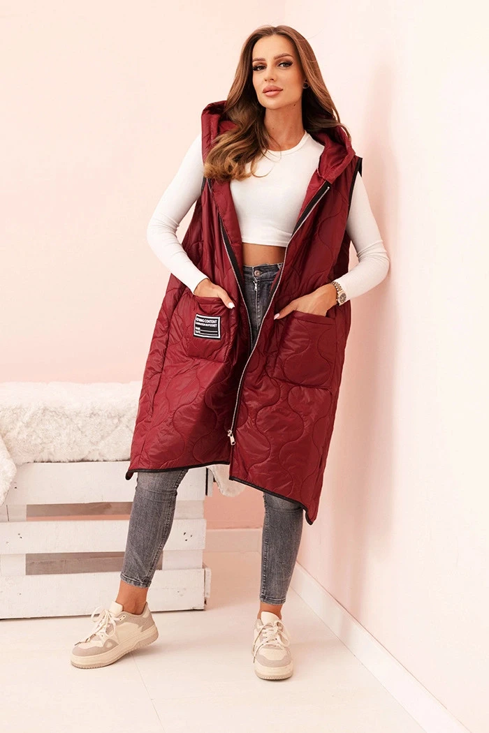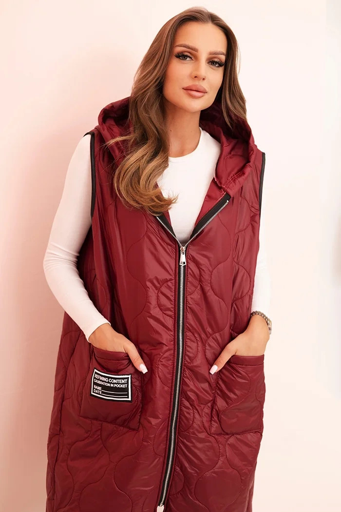 3. Dámská prošívaná vesta Plus Size s kapucí na zip bordová