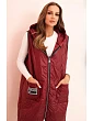 Dámská prošívaná vesta Plus Size s kapucí na zip bordová