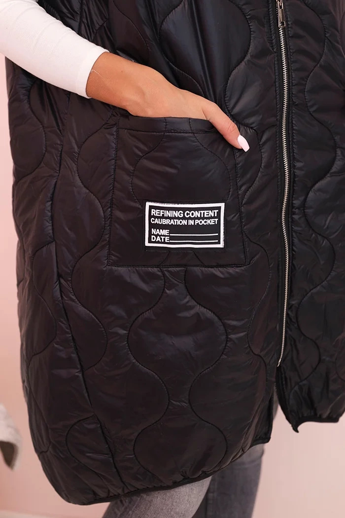 Pikovaná dámská vesta Plus Size je ideálním návrhem na chladnější dny. Díky praktické kapuci a pohodlnému zapínání na zip se hodí jak do městských stylizací, tak na procházky. Model má módní geometrický vzor prošívání, který dodává celku charakter, a délka sahající za boky skvěle modeluje siluetu. Prostorné kapsy vpředu zvyšují funkčnost a ozdobná nášivka dodává sportovní styl. Tato vesta je kombinací pohodlí a stylu – vyrobena z lehkého, ale odolného materiálu, ideální k nošení po celou přechodnou sezónu. Může být kombinována s legínami, džíny nebo sportovním šaty, čímž vytváří módní, vrstvené stylizace. Velikost je univerzální a bude vhodná pro dámy ve velikosti L, XL, XXL.