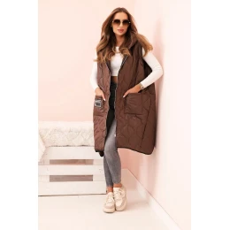 Dámská prošívaná vesta Plus Size s kapucí na zip hnědá