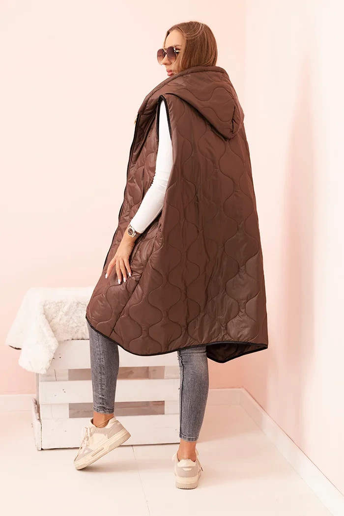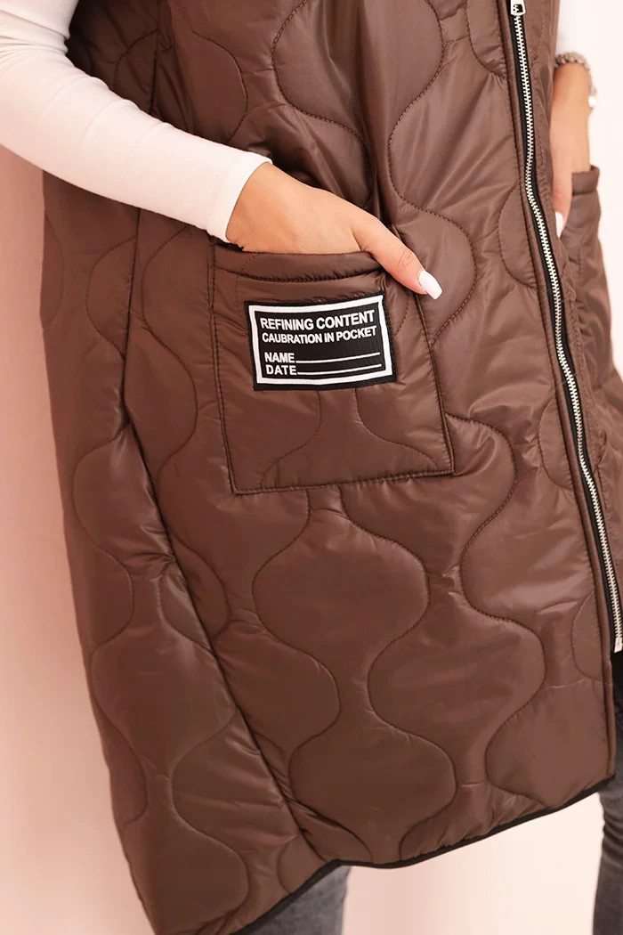 Pikovaná dámská vesta Plus Size je ideálním návrhem na chladnější dny. Díky praktické kapuci a pohodlnému zapínání na zip se hodí jak do městských stylizací, tak na procházky. Model má módní geometrický vzor prošívání, který dodává celku charakter, a délka sahající za boky skvěle modeluje siluetu. Prostorné kapsy vpředu zvyšují funkčnost a ozdobná nášivka dodává sportovní styl. Tato vesta je kombinací pohodlí a stylu – vyrobena z lehkého, ale odolného materiálu, ideální k nošení po celou přechodnou sezónu. Může být kombinována s legínami, džíny nebo sportovním šaty, čímž vytváří módní, vrstvené stylizace. Velikost je univerzální a bude vhodná pro dámy ve velikosti L, XL, XXL.