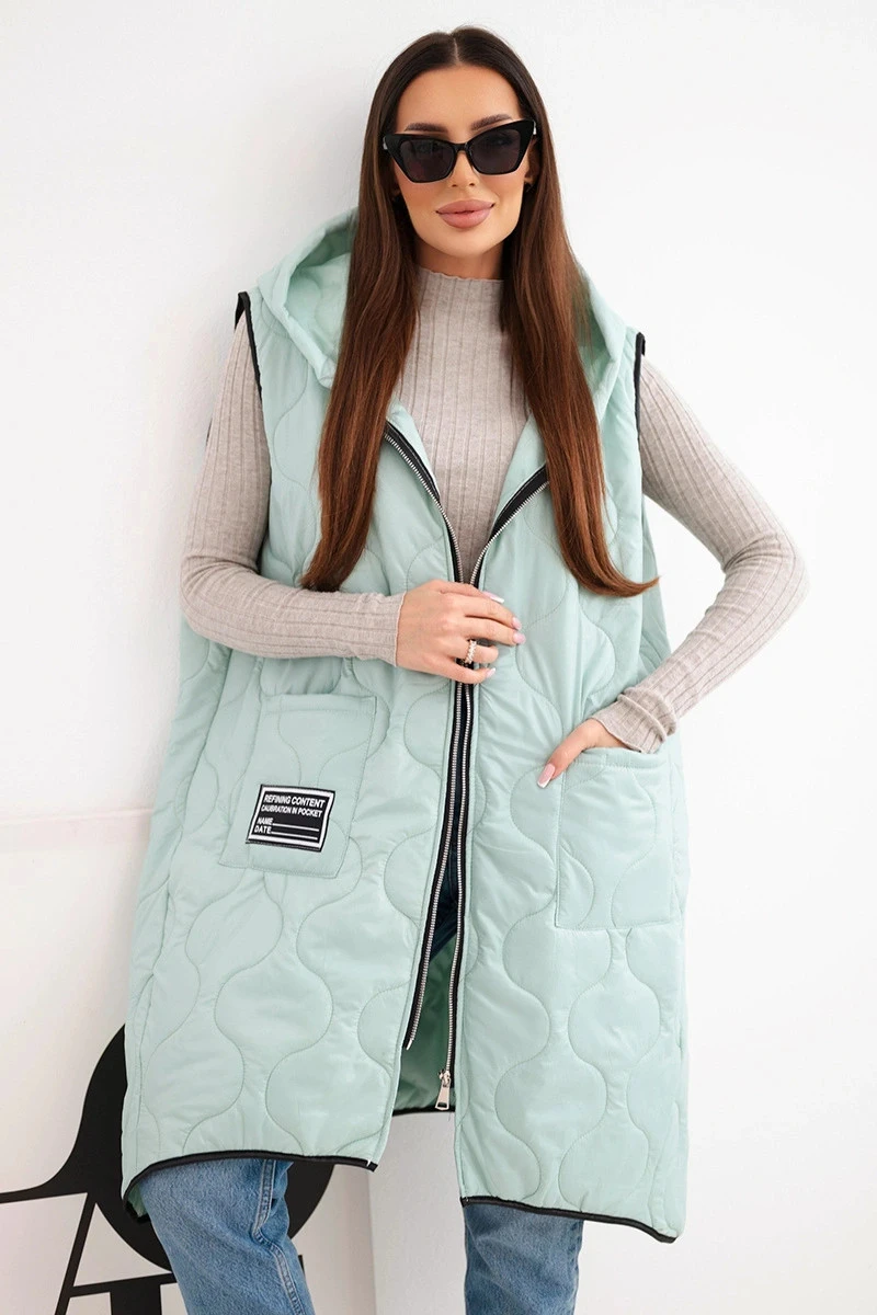 Pikovaná dámská vesta Plus Size je ideálním návrhem na chladnější dny. Díky praktické kapuci a pohodlnému zapínání na zip se hodí jak do městských stylizací, tak na procházky. Model má módní geometrický vzor prošívání, který dodává celku charakter, a délka sahající za boky skvěle modeluje siluetu. Prostorné kapsy vpředu zvyšují funkčnost a ozdobná nášivka dodává sportovní styl. Tato vesta je kombinací pohodlí a stylu – vyrobena z lehkého, ale odolného materiálu, ideální k nošení po celou přechodnou sezónu. Může být kombinována s legínami, džíny nebo sportovním šaty, čímž vytváří módní, vrstvené stylizace. Velikost je univerzální a bude vhodná pro dámy ve velikosti L, XL, XXL.