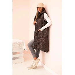 Dámská prošívaná vesta Plus Size s kapucí na zip mocca