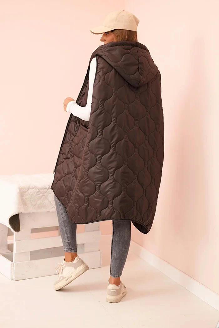 Pikovaná dámská vesta Plus Size je ideálním návrhem na chladnější dny. Díky praktické kapuci a pohodlnému zapínání na zip se hodí jak do městských stylizací, tak na procházky. Model má módní geometrický vzor prošívání, který dodává celku charakter, a délka sahající za boky skvěle modeluje siluetu. Prostorné kapsy vpředu zvyšují funkčnost a ozdobná nášivka dodává sportovní styl. Tato vesta je kombinací pohodlí a stylu – vyrobena z lehkého, ale odolného materiálu, ideální k nošení po celou přechodnou sezónu. Může být kombinována s legínami, džíny nebo sportovním šaty, čímž vytváří módní, vrstvené stylizace. Velikost je univerzální a bude vhodná pro dámy ve velikosti L, XL, XXL.