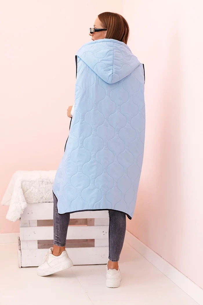 • Dámská prošívaná vesta Plus Size s kapucí na zip modrá
