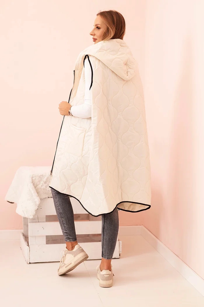 Pikovaná dámská vesta Plus Size je ideálním návrhem na chladnější dny. Díky praktické kapuci a pohodlnému zapínání na zip se hodí jak do městských stylizací, tak na procházky. Model má módní geometrický vzor prošívání, který dodává celku charakter, a délka sahající za boky skvěle modeluje siluetu. Prostorné kapsy vpředu zvyšují funkčnost a ozdobná nášivka dodává sportovní styl. Tato vesta je kombinací pohodlí a stylu – vyrobena z lehkého, ale odolného materiálu, ideální k nošení po celou přechodnou sezónu. Může být kombinována s legínami, džíny nebo sportovním šaty, čímž vytváří módní, vrstvené stylizace. Velikost je univerzální a bude vhodná pro dámy ve velikosti L, XL, XXL.