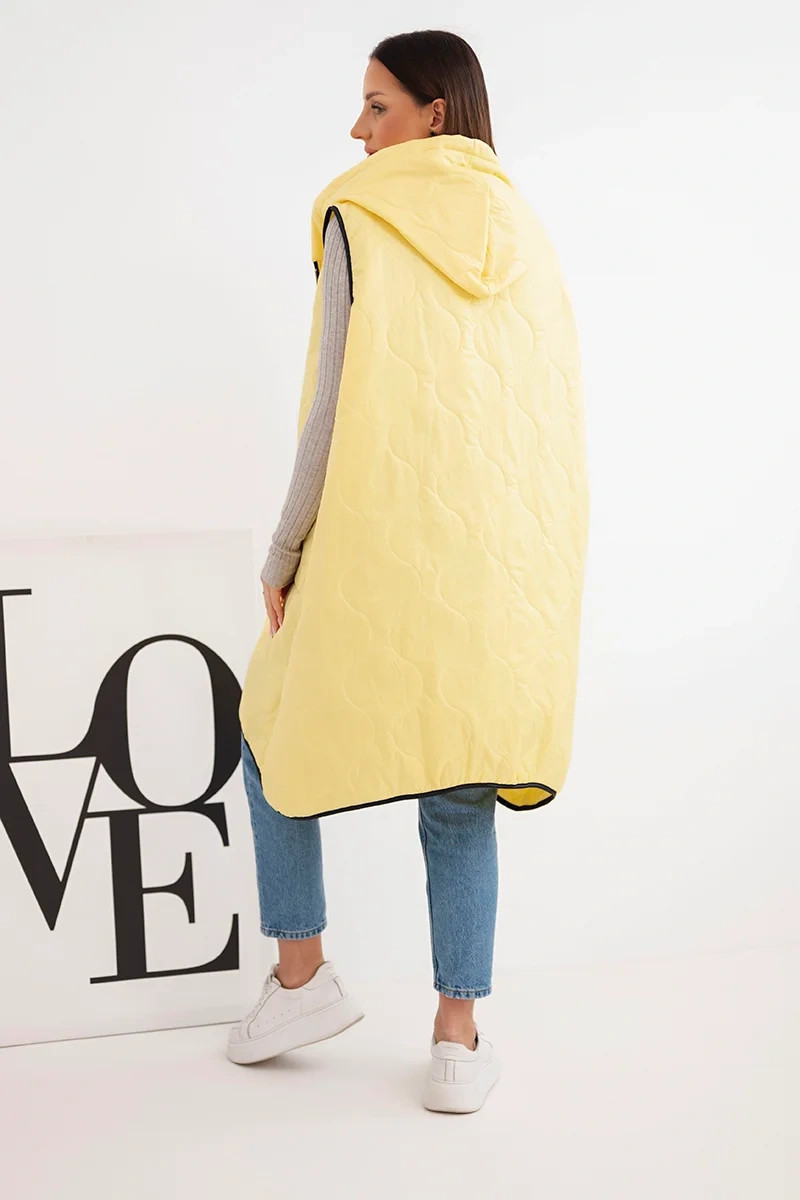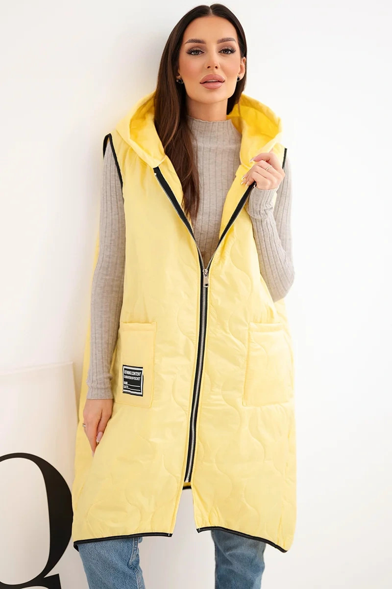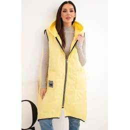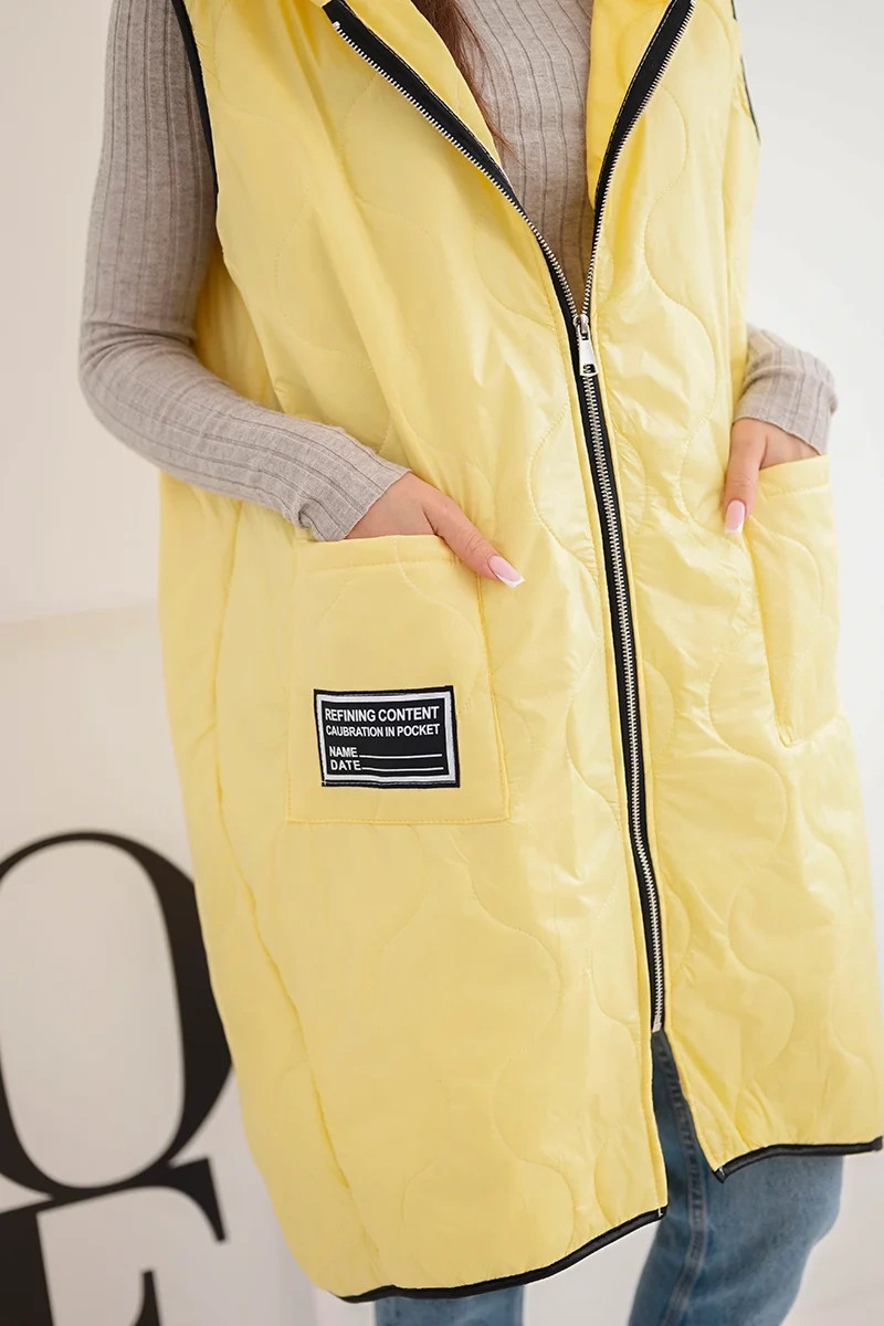 • Dámská prošívaná vesta Plus Size s kapucí na zip žlutá
