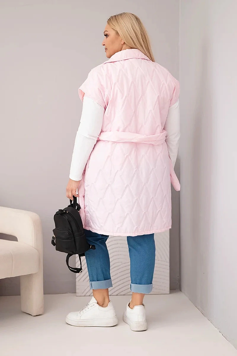 • Dámská prošívaná vesta Plus Size s páskem a límcem bonbónově růžová