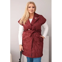 Stylová, prošívaná dámská vesta s páskem je nabídkou pro ženy, které si cení eleganci spojenou s pohodlím. Model s klasickým límcem a dekorativní broží „D” krásně zvýrazňuje siluetu díky přiloženému pásku, který lze regulovat v pase. Prošívaný materiál s geometrickým vzorem dodává celku moderní charakter a délka po kolena zajišťuje ochranu a komfort v chladnějších dnech.